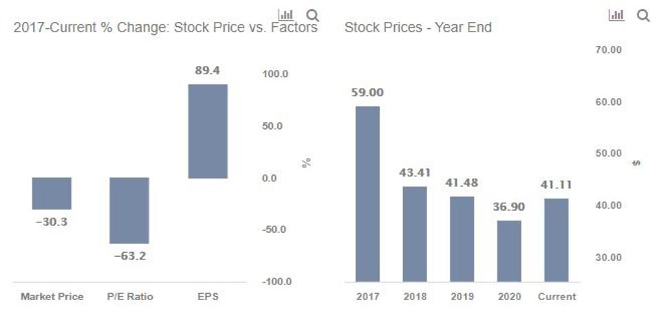 Cbs viacom stock. However its earnings are forecast to fall at an annual rate of 38 in the next five years. They reach over 100 million US households and have a huge library of content. According to the data of the stocks medium term indicators the stock is currently averaging as a 50 Buy while an average of long term indicators suggests that the stock is currently 50 Sell.